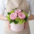 3 гербера в шляпной коробке