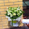 Букет из белых эустом и фисташки