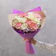 Букет розовых и белых роз с зеленью