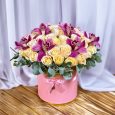 Коробка гладиолусов, эустом и гербер