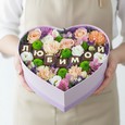 Коробка красных гербер, роз и фрезий
