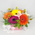 Коробка персиковых и розовых пионовидных роз