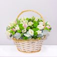 Корзина эустом, гортензий и пионов