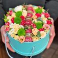 Пионовидные розы и гортензии в ящике
