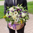 Розы и эустомы в коробке